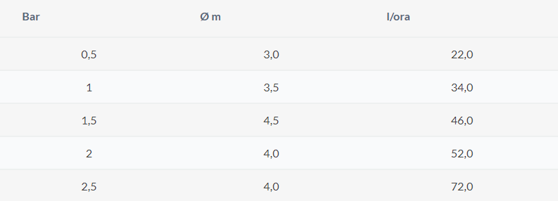 – Lunghezza massima getto: Ø 4,5m