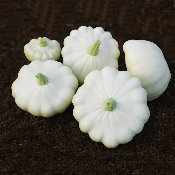 Zucchino “Custard White” dalla forma a disco con margine ondulato, varietà rara e decorativa. Polpa tenera, bianca, dal sapore dolce. Ideale grigliato, ripieno o al forno.